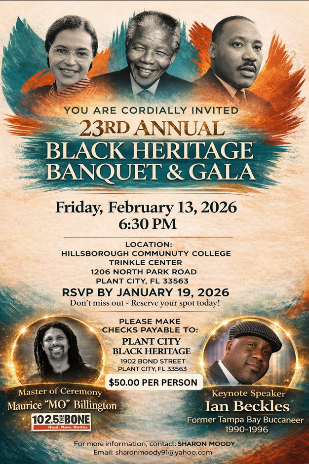 The Plant City Black Heritage Celebration, Inc. is pleased to announce that the 2026 Black Heritage Educational and Cultural Festival are scheduled for February 13 - 14, 2026. This event coincides with Black History Month and provides a great opportunity for the Plant City community to honor the rich cultural history of African American nationally and as importantly locally.